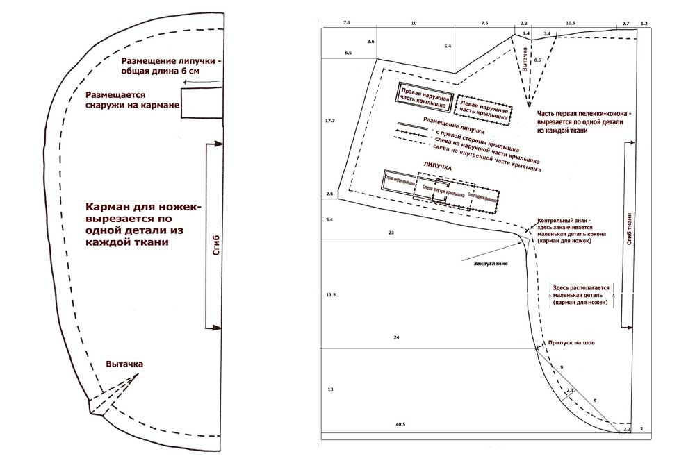 - Все швы, а также молния, должны находиться снаружи пеленки-кокона. Зигзагообразный шов поможет придать этим элементам декоративности.
