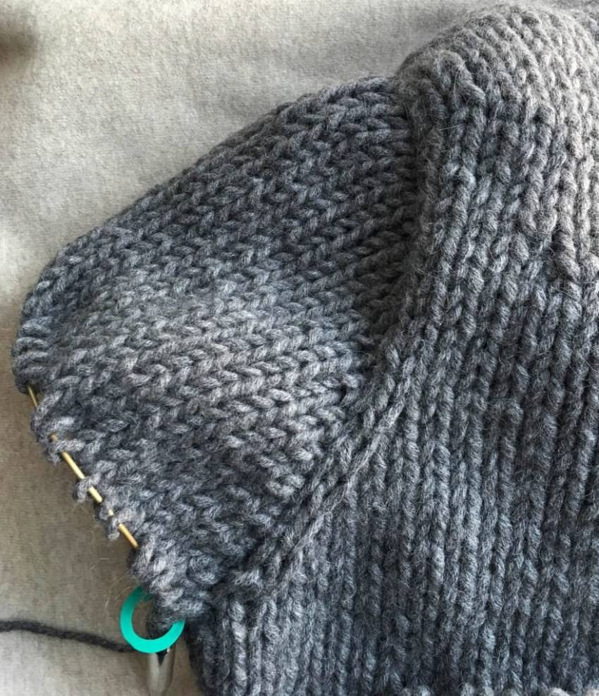 - Далее вяжите 25-30 рядов по кругу с длинными петлями.