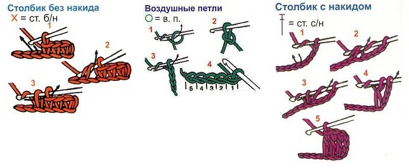 - Ст. б. н. (или ст. б/н) – столбик без накида;