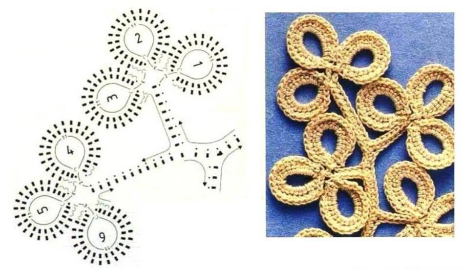схемы элементов ирландского кружева, связанных крючком, вариант 9