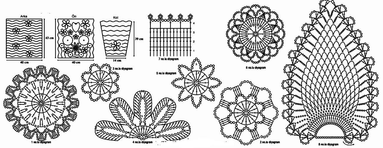 Ниже добавляем схемы простых фрагментов и готовые фото последних.