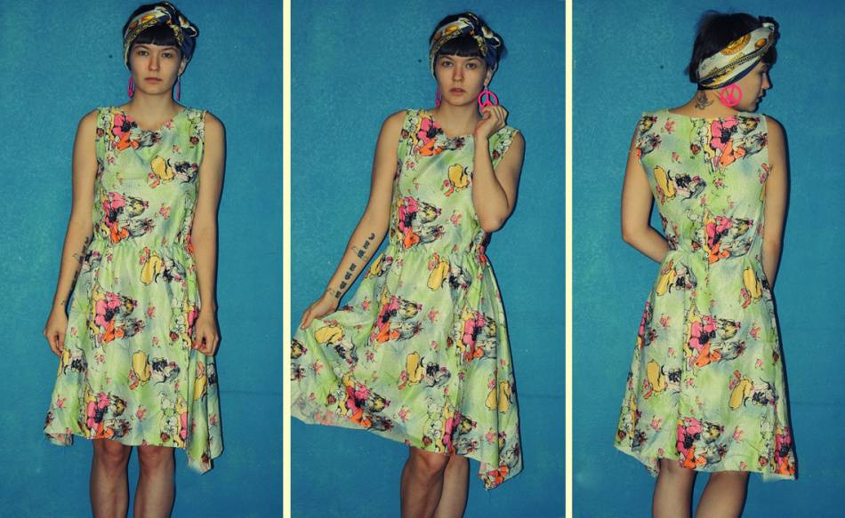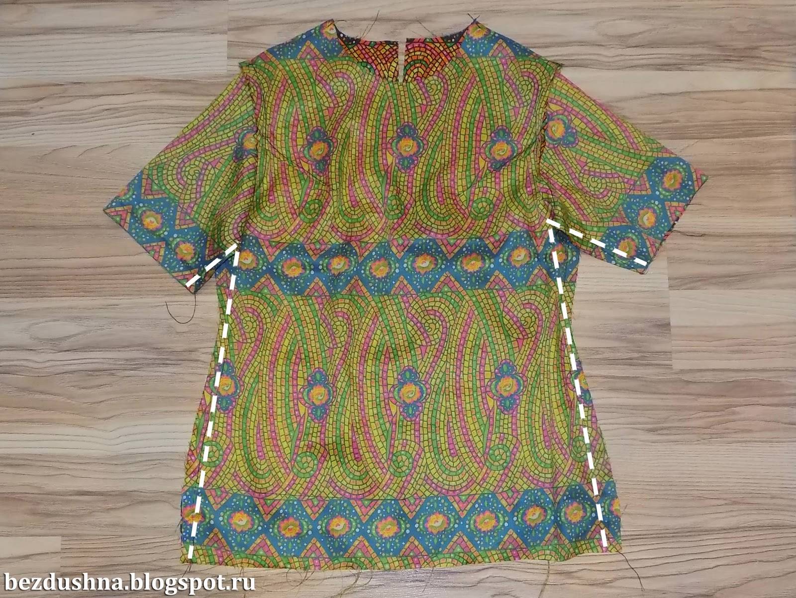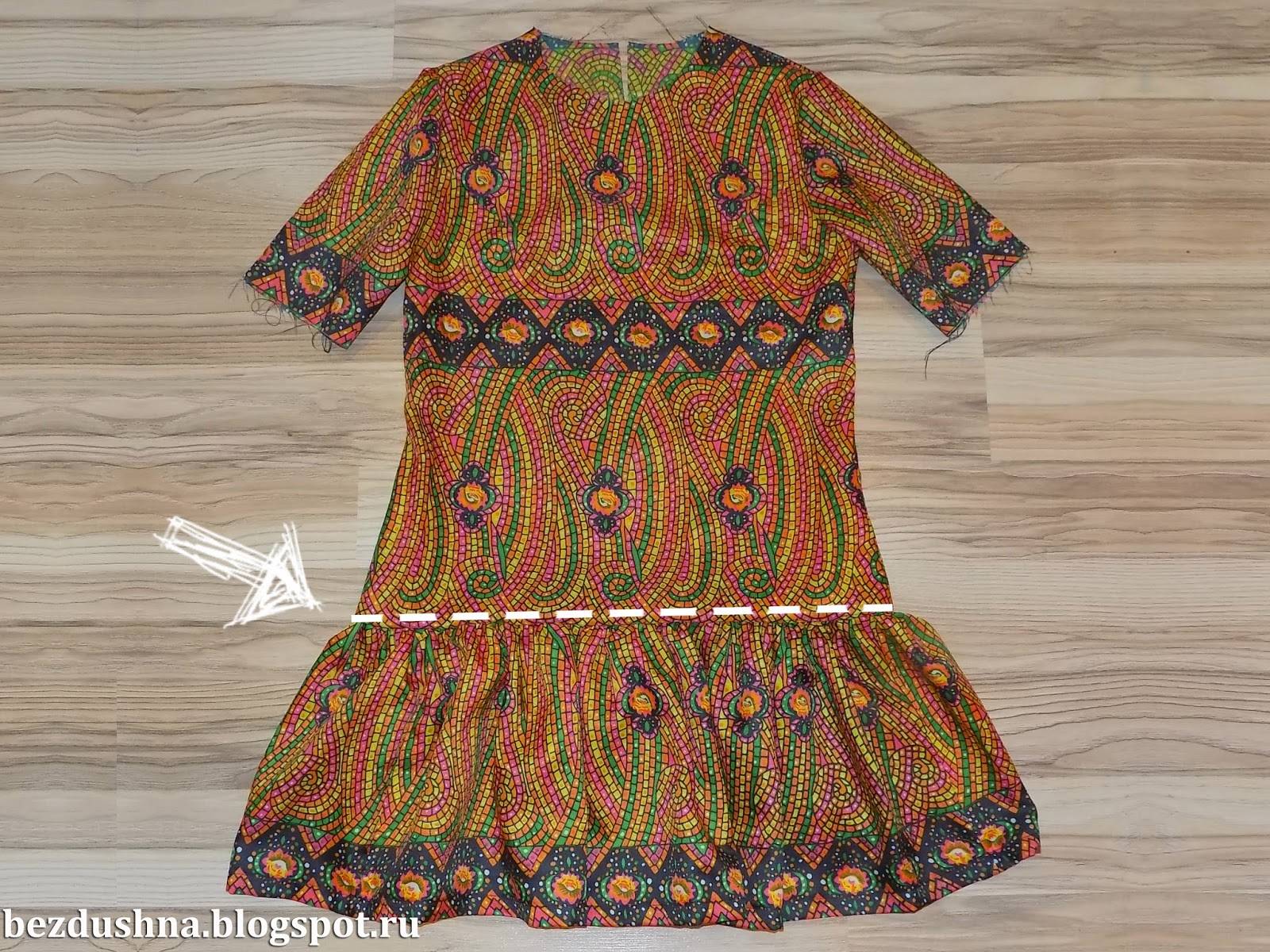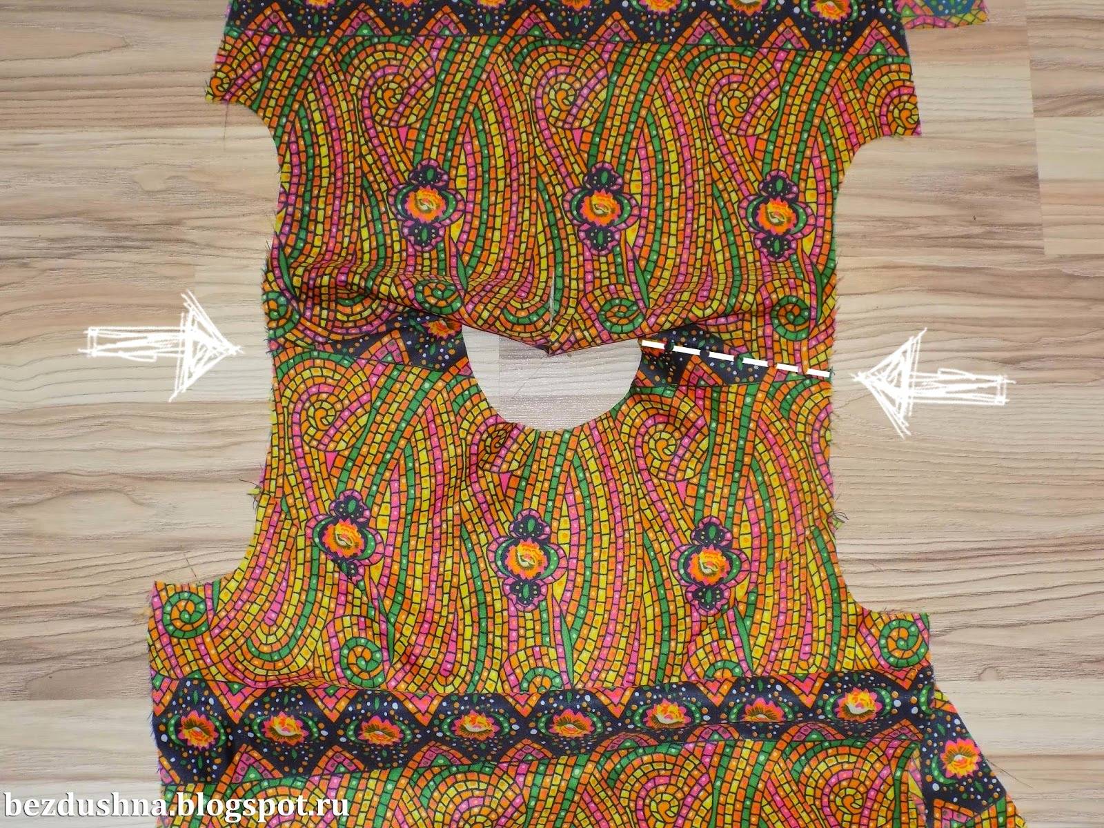 Платье это будет простым по максимуму, поэтому рекомендуется отдать предпочтение ярким тканям с броским принтом. И запаситесь каким-нибудь уже имеющимся готовым нарядом — на его очертания можно опираться для того, чтобы не пользоваться выкройкой.