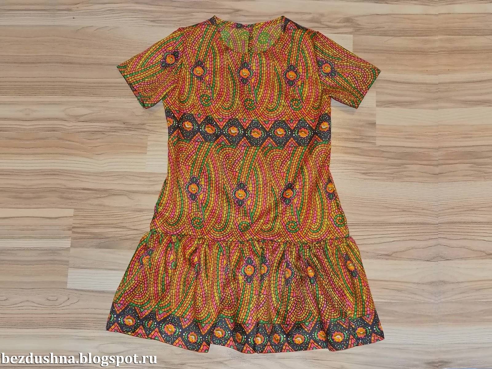 Вот какое простое платье мы получаем в итоге — пёстрое, удобное и лёгкое