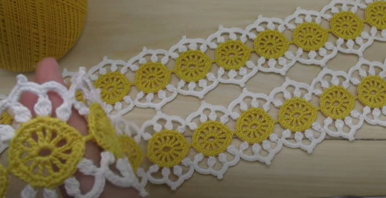 При ее выполнении, важно провязать орнамент, используя два ушка.