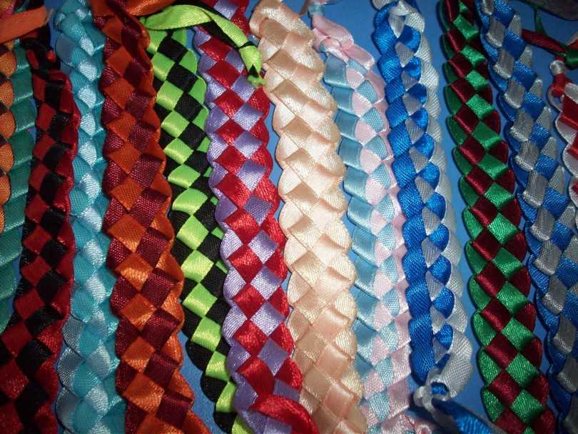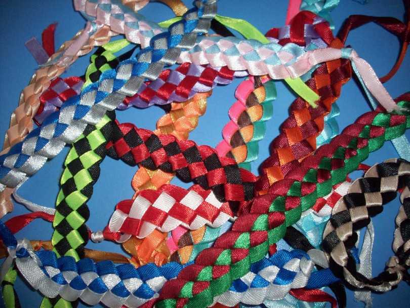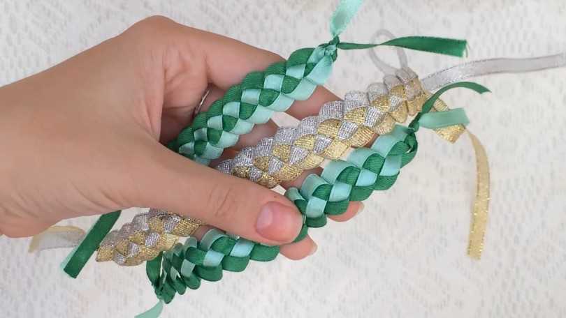 Мастера советуют использовать качественные ленты для изделий. Обычно на один аксессуар уходит по 2 м каждого цвета. Все зависит от выбранного изделия. Для работы схемы плетения. Например, следующие:
