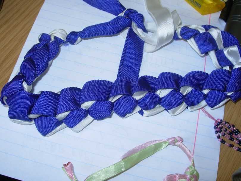 - Переплетайте одну ленточку через другую, как показано на картинке.