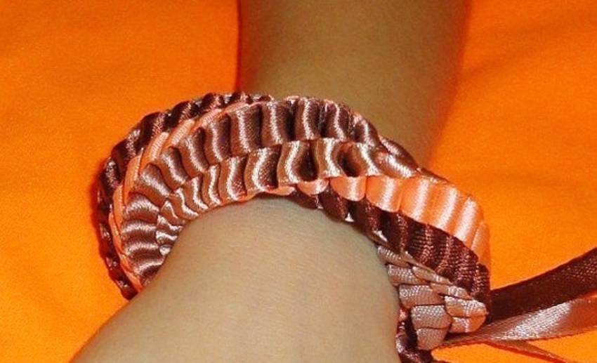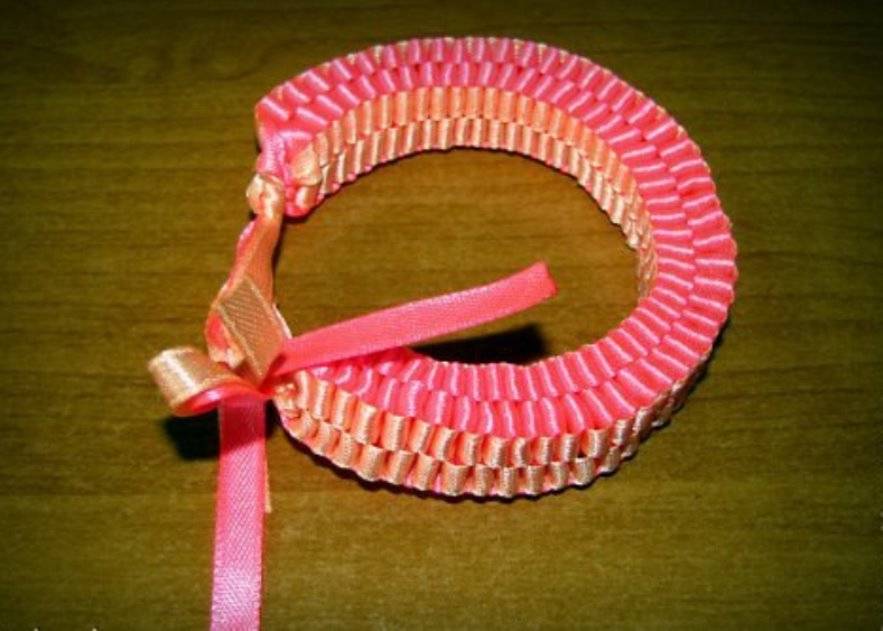 Плетение из двух ленточек считается базовым в старинном искусстве. Пошаговый мастер-класс создания простого браслета: