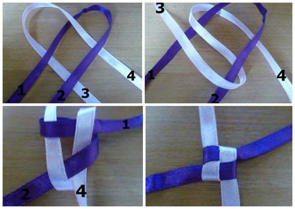 - Переплетайте одну ленточку через другую, как показано на картинке.