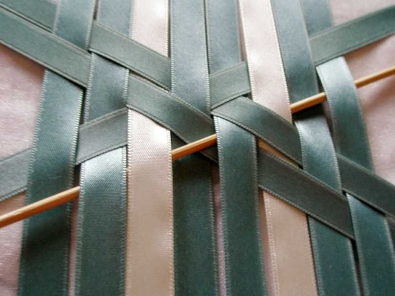 Особый интерес представляет плетение из ленты атласной. Такие образцы выглядят особенно нарядно, качественно.Изготовление само по себе простое и отнимает меньше времени, чем те же тонкие нитки или мелкие бисеринки, стразы, пайетки, требующие кропотливости, хорошего зрения и усидчивости.
