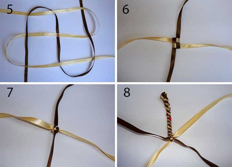 Самодельные украшения, которые создаются из двух атласных полосок, служат основой любой техники плетения. Опытные мастерицы способны произвести такие манипуляции за считаные минуты. Главное понять, как производятся эти простые действия, а затем можно выплетать и более сложные узоры, используя при изготовлении браслетов большее количество лент, шнуров и дополнительно украшая изделие декоративными элементами.