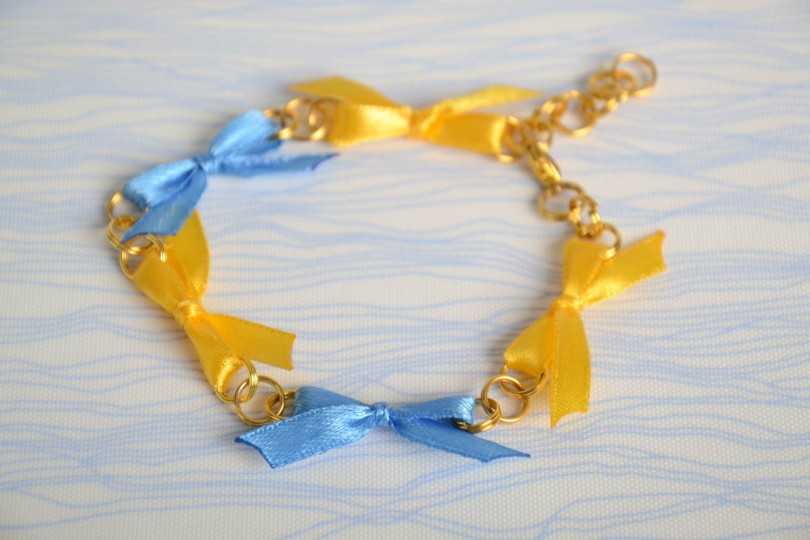 - Хвостики отрежьте. На второй стороне браслета повторите те же действия.