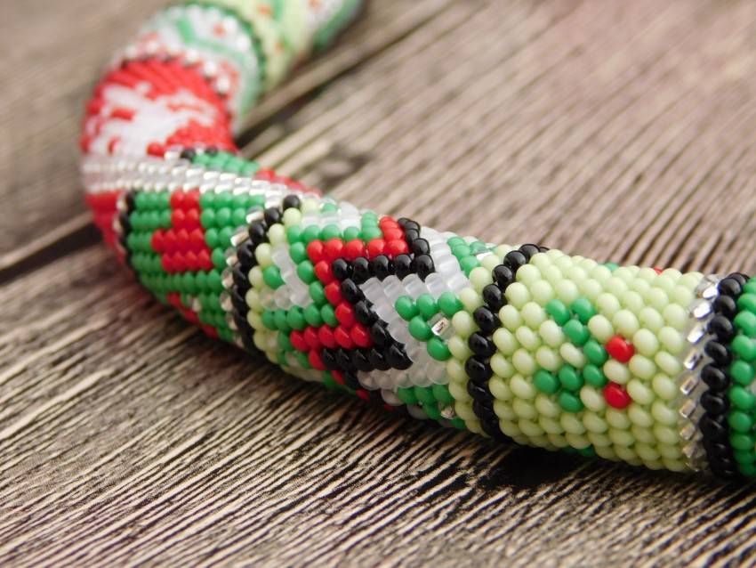 Приобретая его, стоит обратить внимание на то, чтобы материал был качественным, бисеринки не отличались по размеру и форме. Если с бисером все будет в порядке, то и аксессуар выйдет красивым, ровным и аккуратным, без каких-либо дефектов