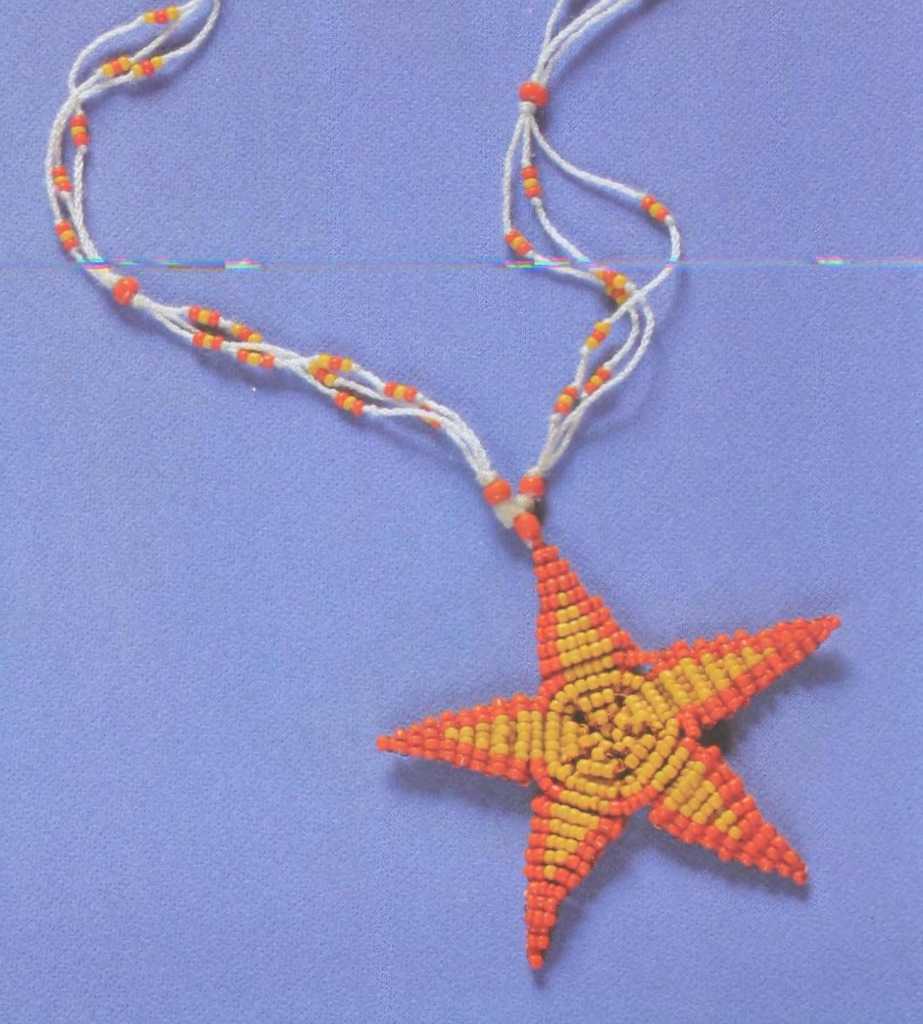 «Летнее» украшение – это морская звезда из бисера. Кулон делается просто, достаточно к верхнему лучу пришить крепление для подвески.