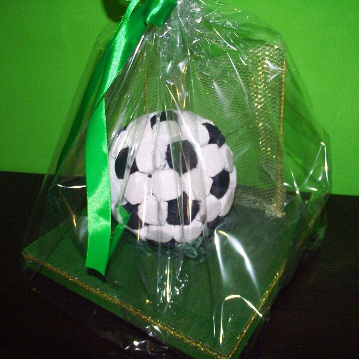 Такой сладкий подарок мужу, выполненный своими руками, несомненно, станет удивительным сюрпризом на его день рождения. А если еще он и сам в футбол частенько играет, то тем более!