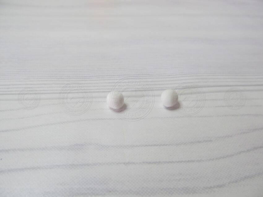 10. Отрываем от белого пластилина совсем крохотные кусочки и превращаем их в шарики. Это будут глаза нашего яблока.