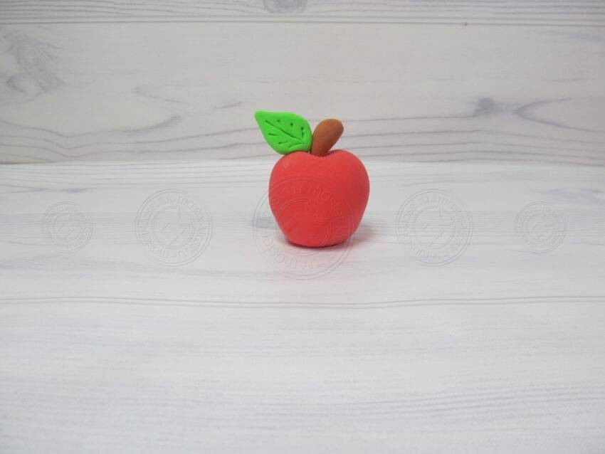 3. Пальцами или специальным приспособлением, присутствующим у вас, формируем яблоко, форма которого представлена на нашей фотографии. Лучше всего использовать инструмент, так как именно он позволяет добиться ровных изгибов. Впоследствии просто уберите лишние шероховатости пальцем, если они будут