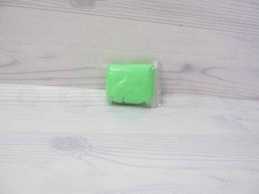 7. Берем салатовый пластилин, для того чтобы оформить поделку зеленью.