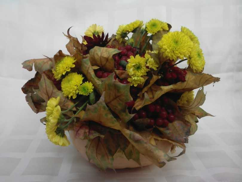 Заготовить для осенней поделки ягоды или сухоцветы будет сложнее. Об этом стоит позаботиться заранее, нанизав каждую ягодку в отдельности на нитку и оставив высыхать в сухом прохладном месте. Бутоны сухоцветов также подвешиваются на нитке, при этом они должны располагаться макушкой вниз. При таком расположении цветы сохранят свою изначальную форму.