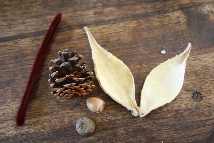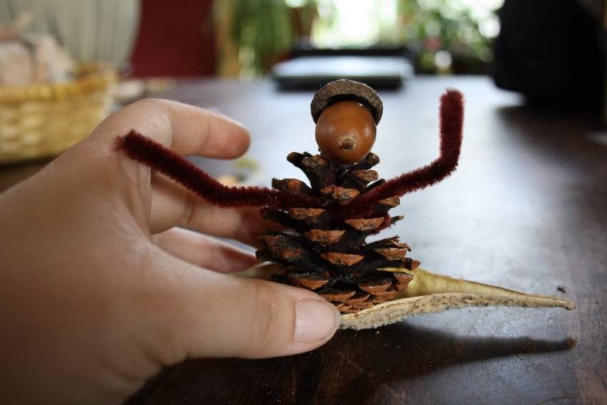 Сам желудь без шляпки используют для тел человечков и животных, и в качестве голов для животных. Роль рогов выполняют маленькие разветвленные веточки. Спички, зубочистки и тонкие ровные веточки могут стать ручками, ножками и рожками.