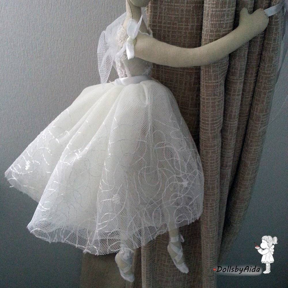 - Ленточки, которыми будут завязываться шторы с обратной стороны, нужно пришить к ручкам куклы.