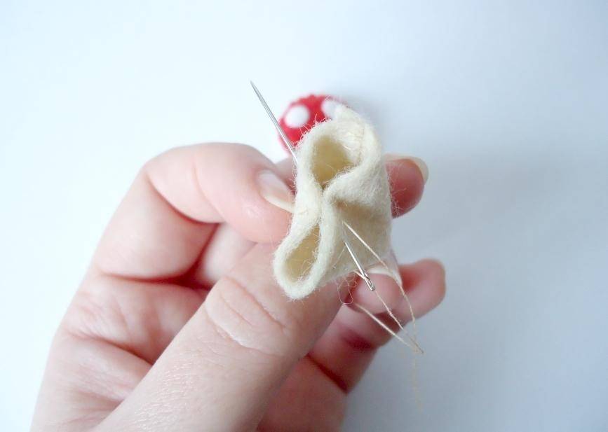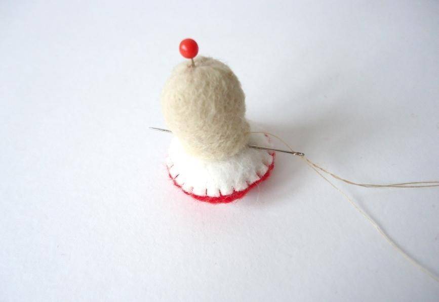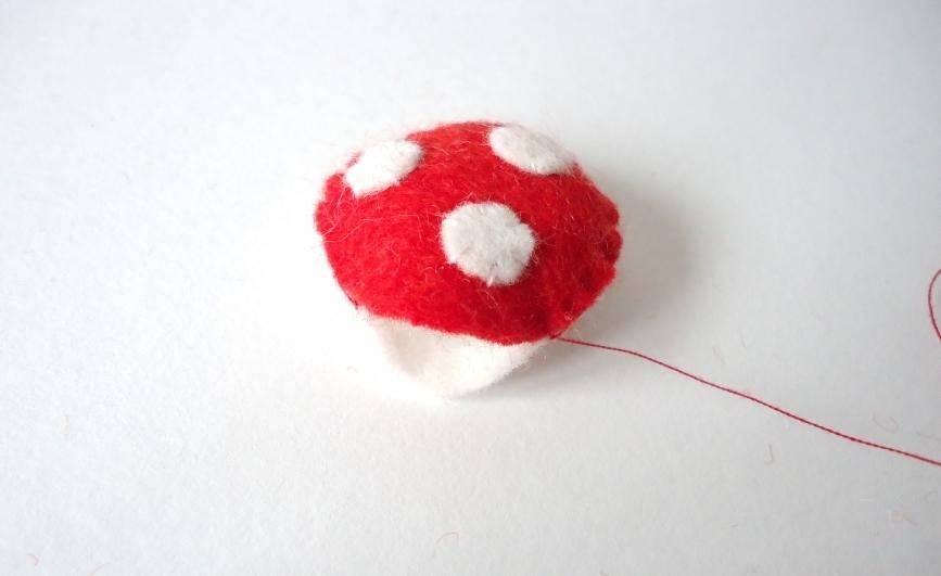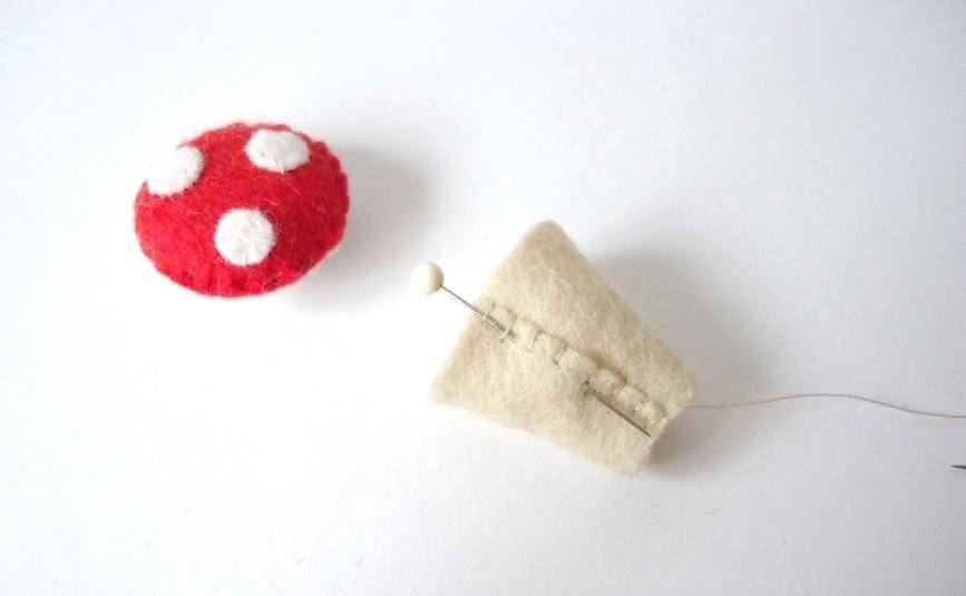 Мухоморы приклеиваем или пришиваем к верху игольницы.