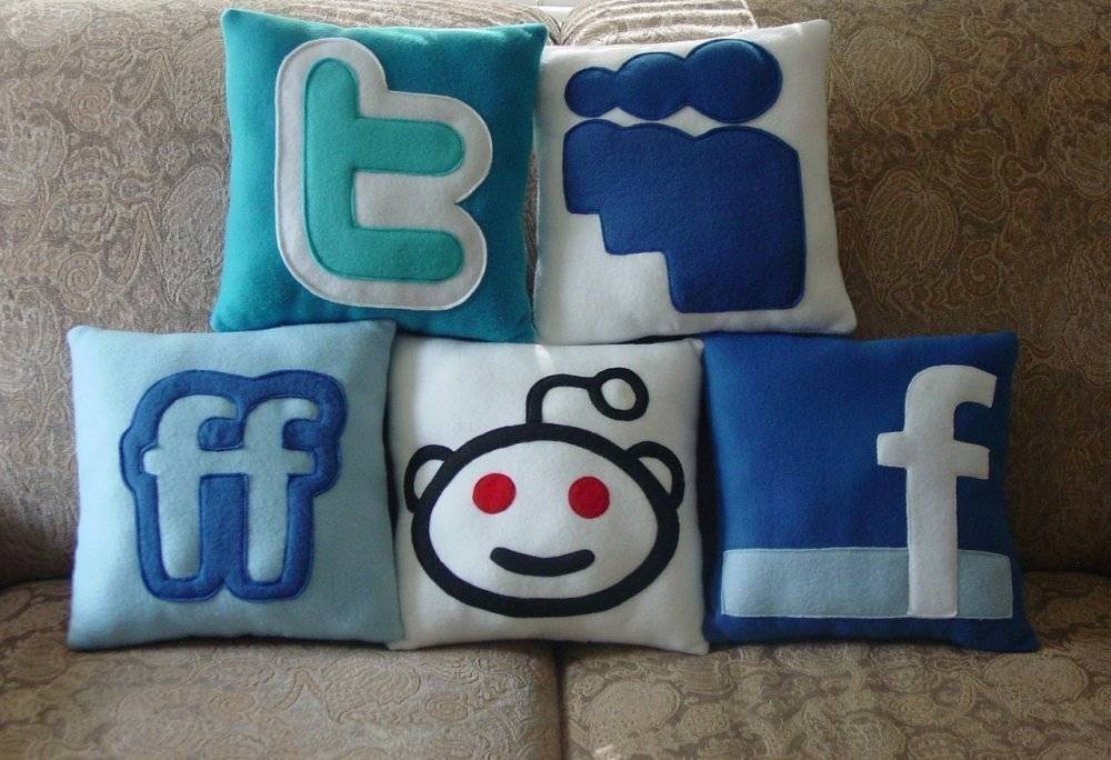 Не меньшей популярностью пользуются и подушки и с изображениями социальных сетей, мессенджеров и прочих небезызвестных сайтов. Это могут быть буквенные изображения, либо логотипы. Нашивные буквы и символика – словом, мастерицам только дай волю проявить фантазию!