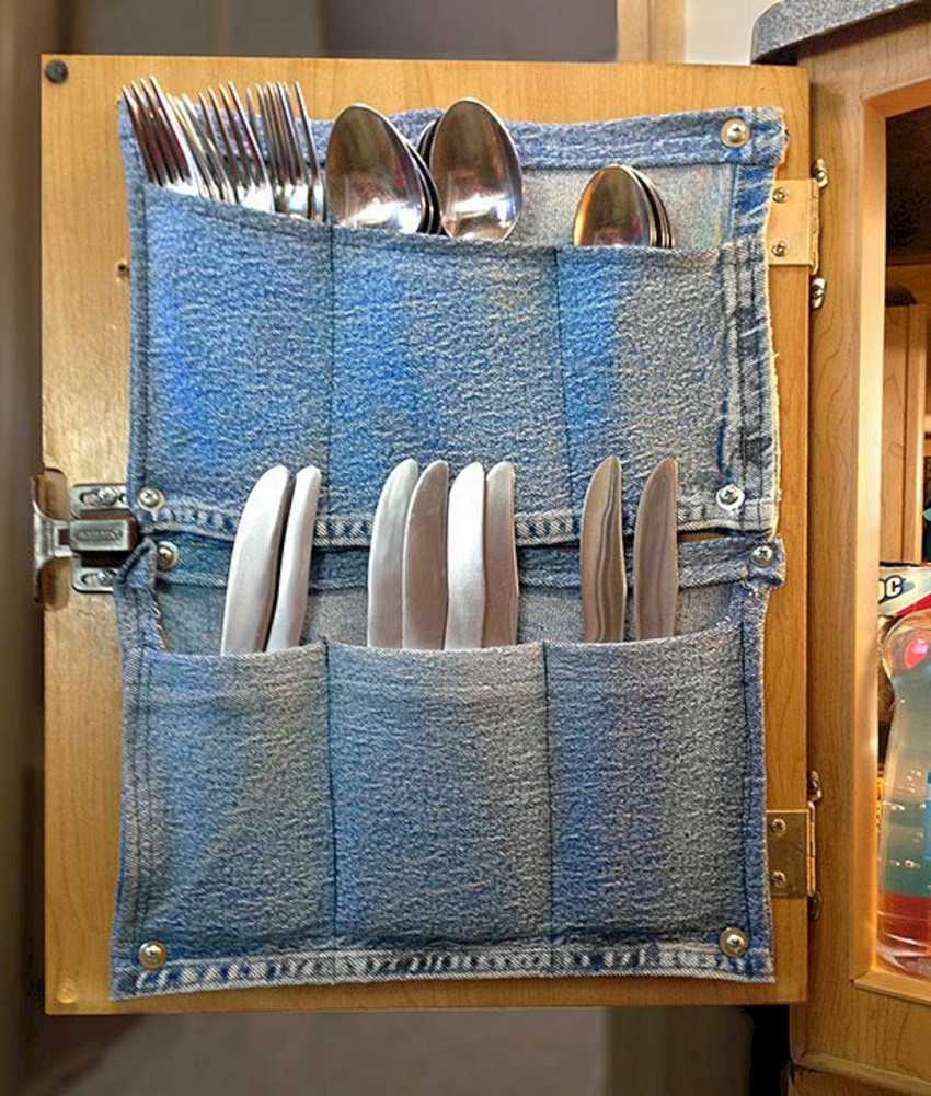 Наверняка в каждом доме есть джинсы, которые уже вышли из моды и лежат в шкафу не один год. Думали выбросить их? Ни в коем случае не делайте этого! Есть отличное применение – использовать их для пошива подвесного органайзера.