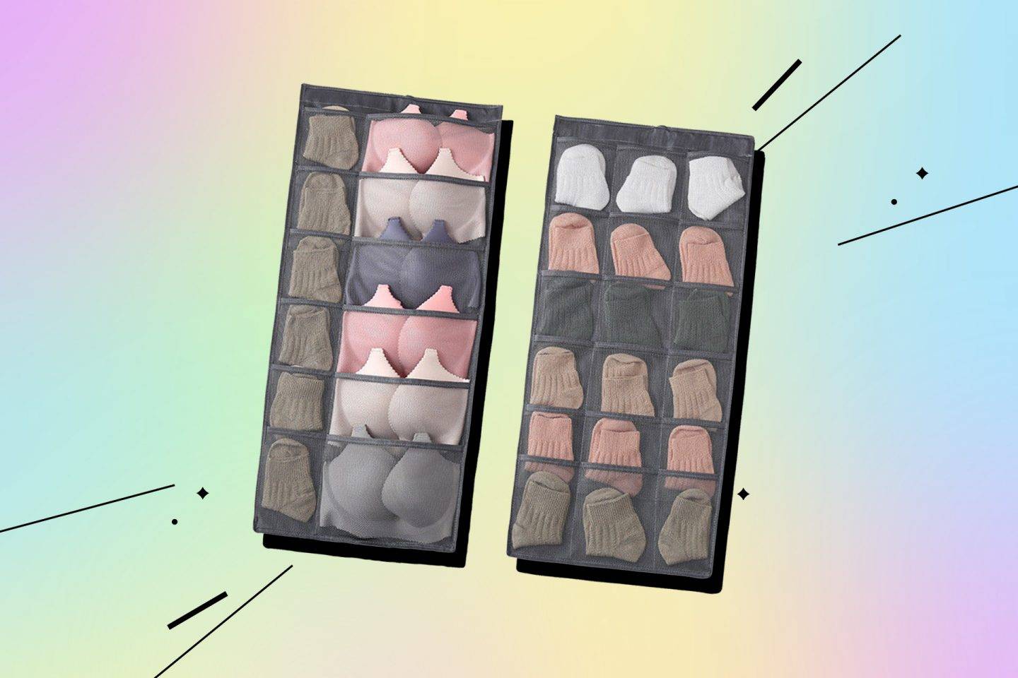 Выручит, если в шкафу уже просто нет места для органайзеров-ящиков. Принцип хранения тот же: отдельная секция для каждого предмета, но сам органайзер висит на вешалке и экономит ещё больше места.