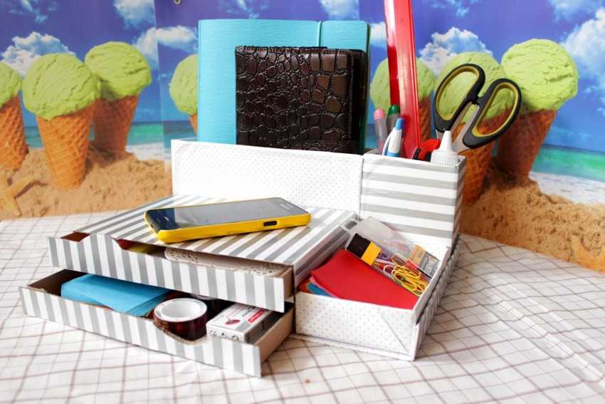Замерьте коробку и габариты шкафа. Если какие — то параметры не сходятся, отрежьте лишнее от коробки. Чтобы изделие смотрелось органично и подходило к дизайну, рекомендуем обклеить коробку красивой цветной бумагой, по желанию.