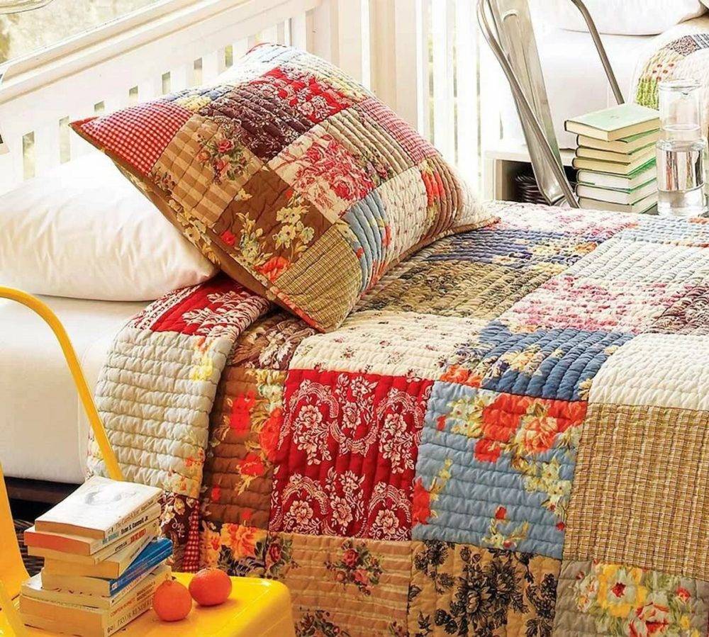 Пошив лоскутного покрывала — не сложный, хоть и довольно длительный процесс. Все необходимые материалы для него вы найдете под рукой: старые наволочки, занавески, одежду и т. д.