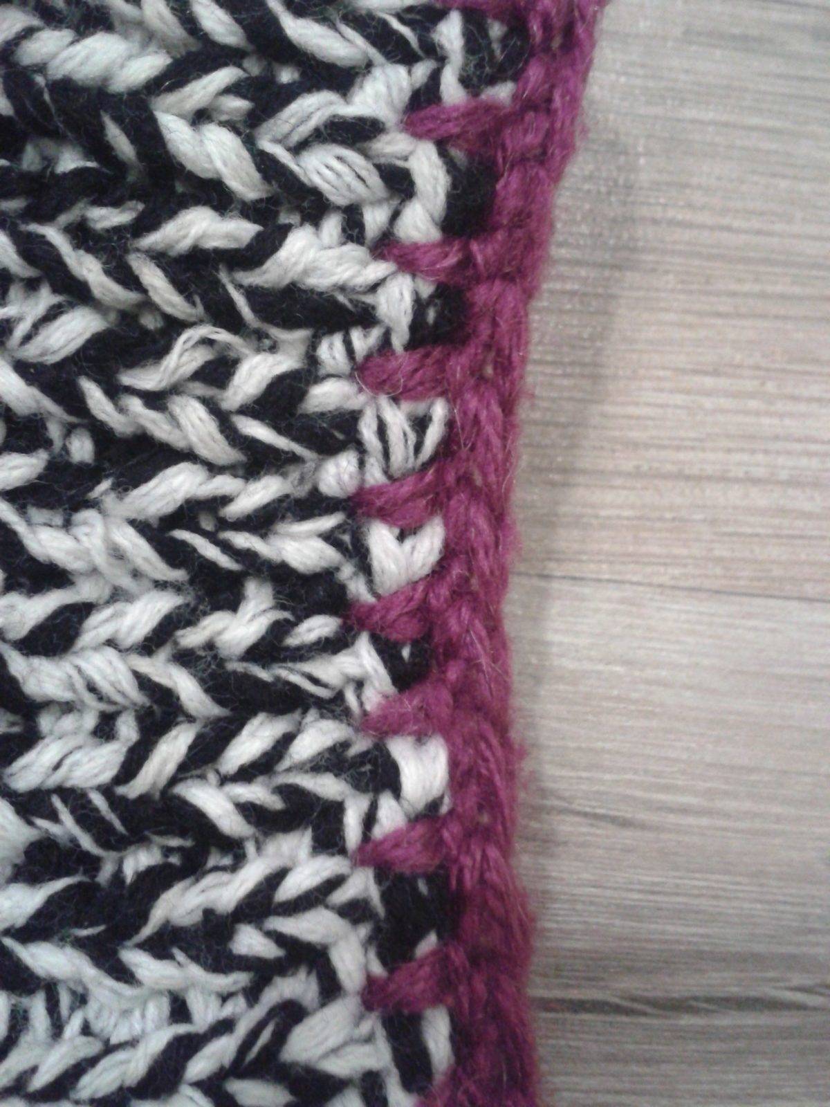 Края изделия обвязывают крючком в технике «рачий шаг» или с помощью иголки с ниткой, который хорошо смотрится в контрасте с основным цветом изделия.