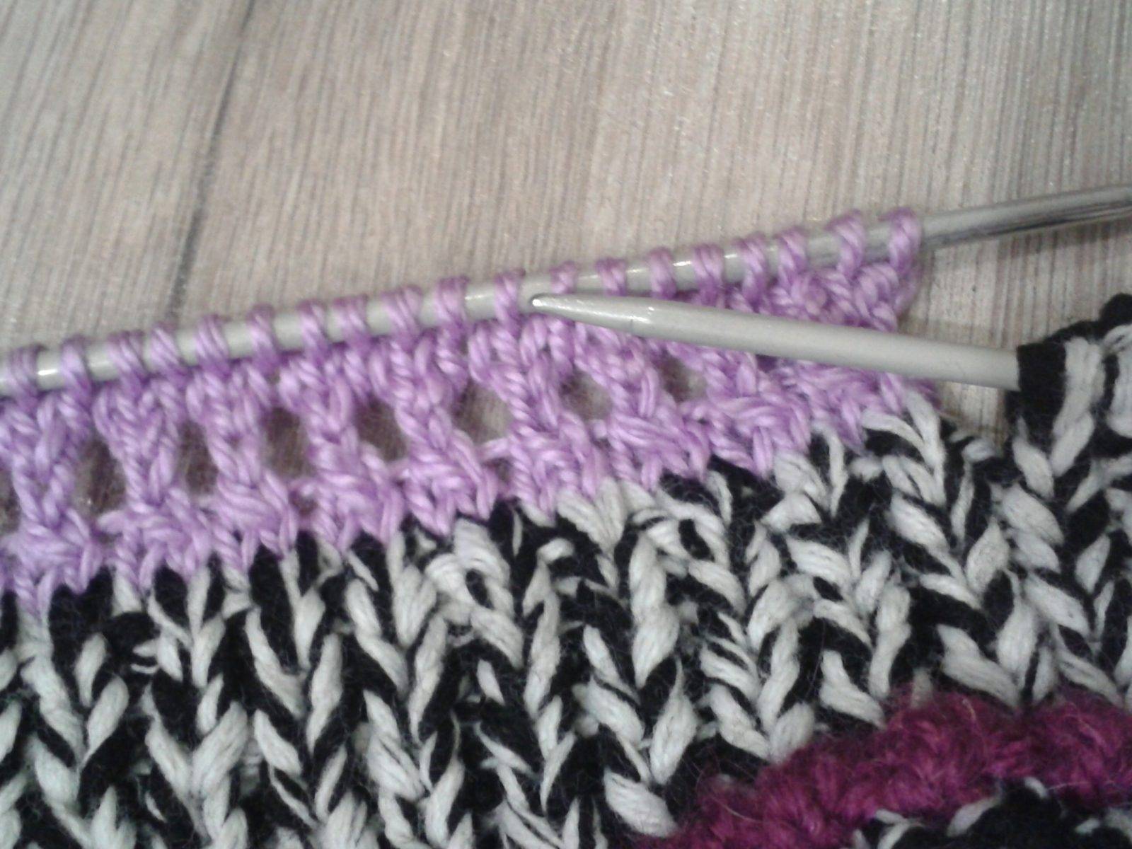 Радужные переходы провязывают укороченными рядами в следующей последовательности:
