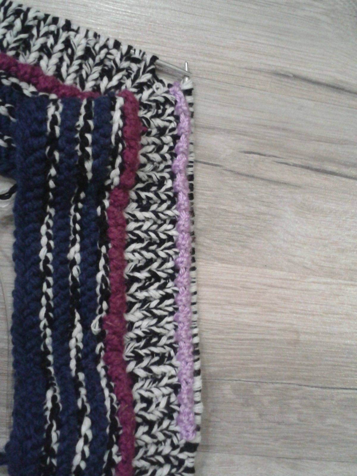 Радужные переходы провязывают укороченными рядами в следующей последовательности: