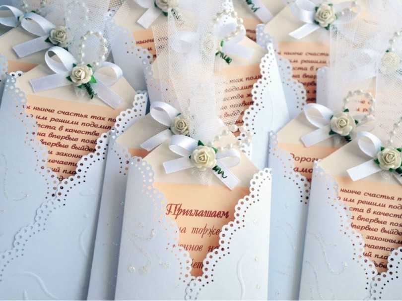 Оригинальные пригласительные можно купить в магазине или сделать своими руками – всё зависит от наличия творческих способностей и финансовых возможностей. Среди изобилия идей и вариантов будущие супруги обязательно найдут подходящий.