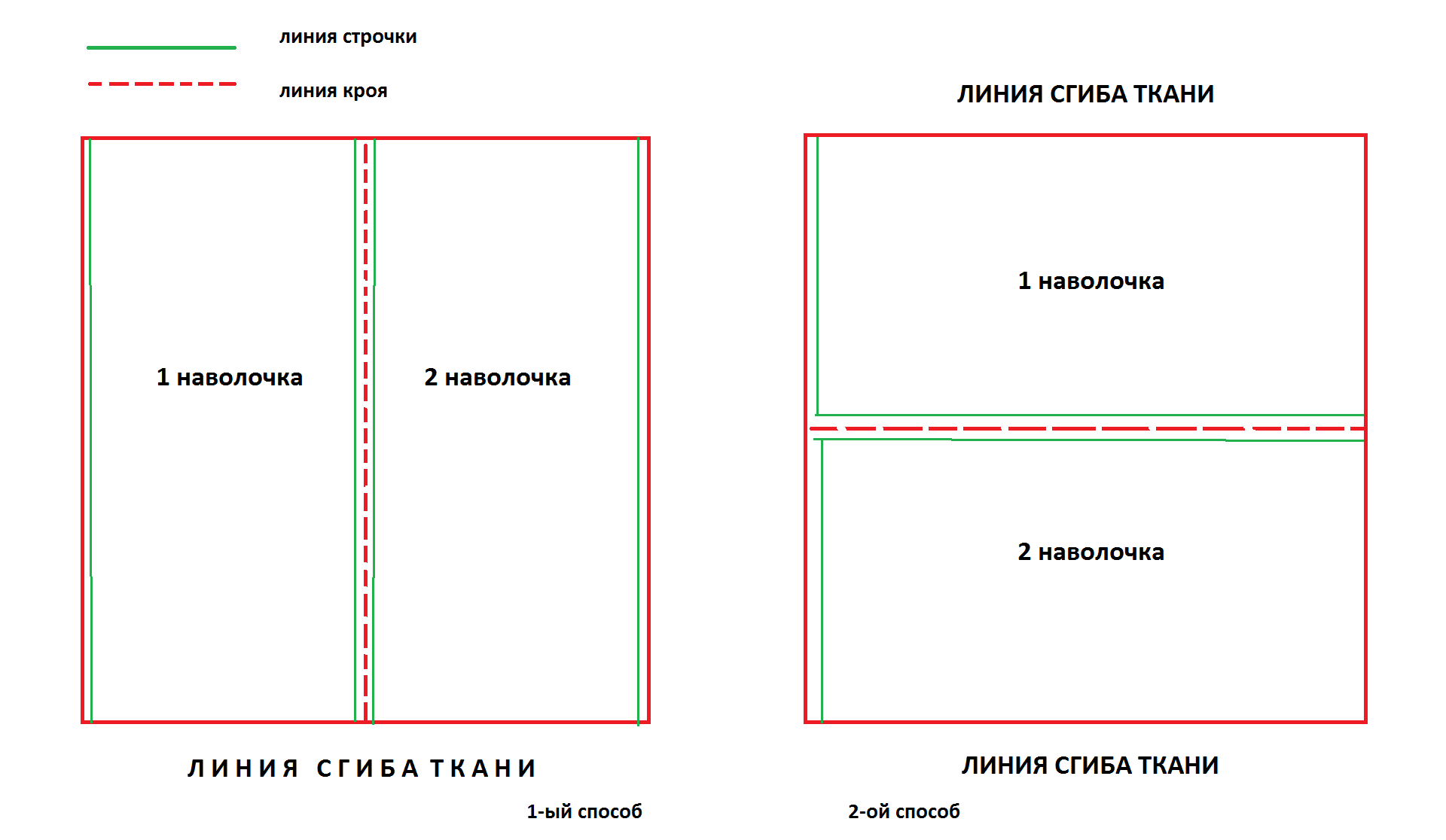 - Выкраивая наволочку, не разрезайте боковые поверхности и клапан. Это также места перегибов изделия.