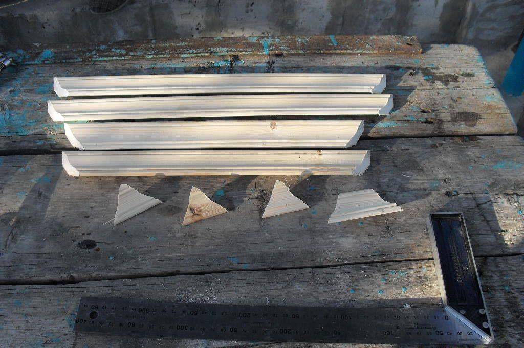 - Отмеряем и обрезаем потолочный плинтус по размерам зеркала.