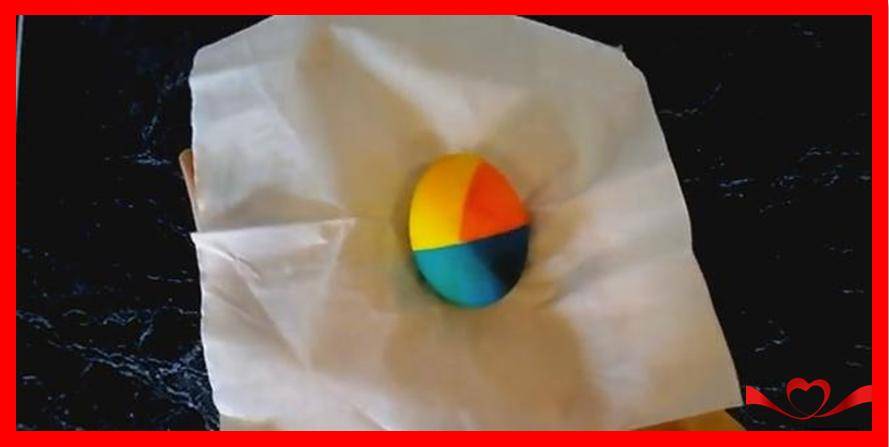 6. Плотно прижмите салфетку к яйцу, чтобы красители окрасили яйцо.