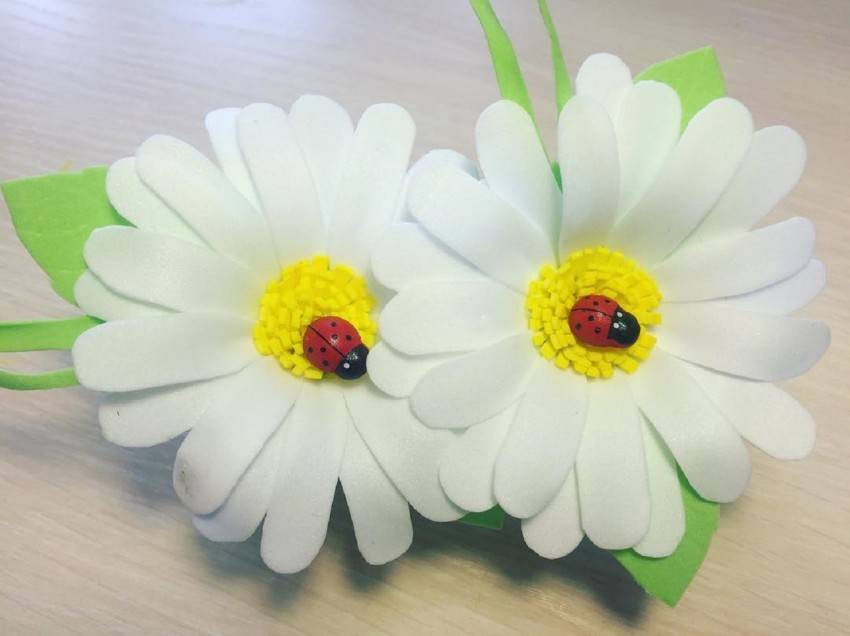 Есть множество фото ромашки, сделанной своими руками, где она включена в одну из описанных композиций.