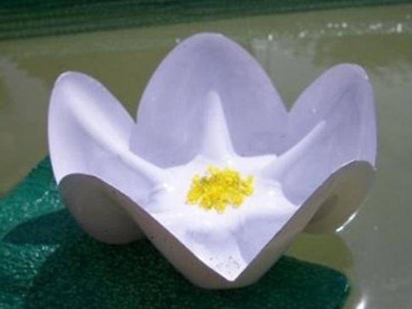 - Горлышко поделки для дачи завинтить крышкой – получится серединка цветка. Можно сделать и «натуральную» желтую серединку, использовав коробочку от «киндер-сюрприза» или другой подручных материал подходящего цвета. Правда, в этом случае, придется его прикрепить: проще всего это сделать с помощью проволоки.
