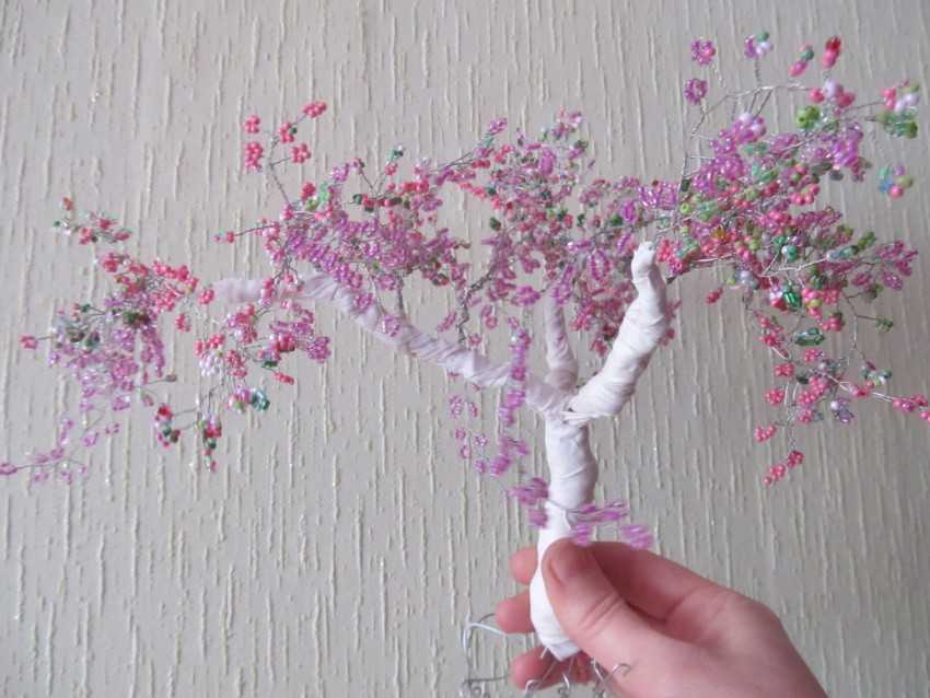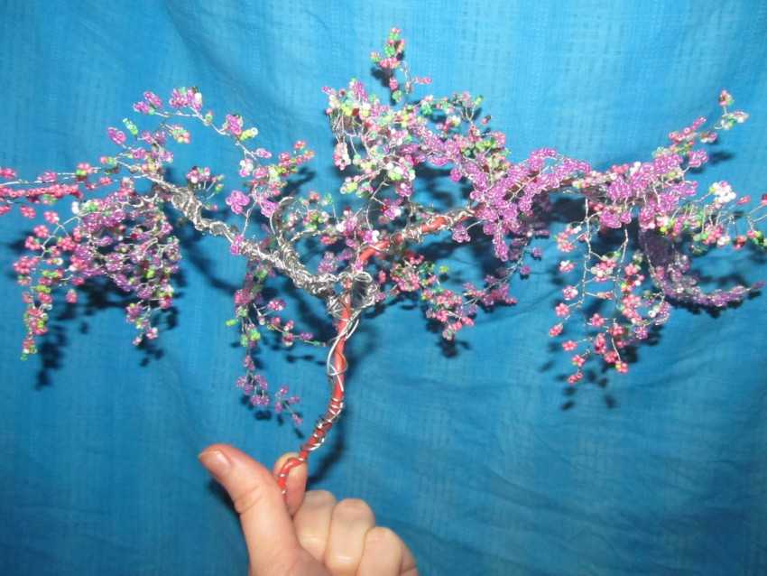 Присоединяем чуть ниже остальные веточки к стеблю, составляем красивую ветку сакуры, как на фото ниже.