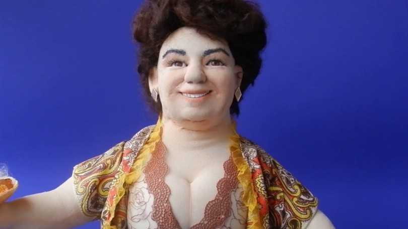 - Лицо куклы создается с помощью стежков, которыми капрон стягивается в нужных местах. Так получаются брови, нос, носогубные складки, губы и подбородок. Далее, ей делают макияж. Глаза куколке можно нарисовать или пришить готовые