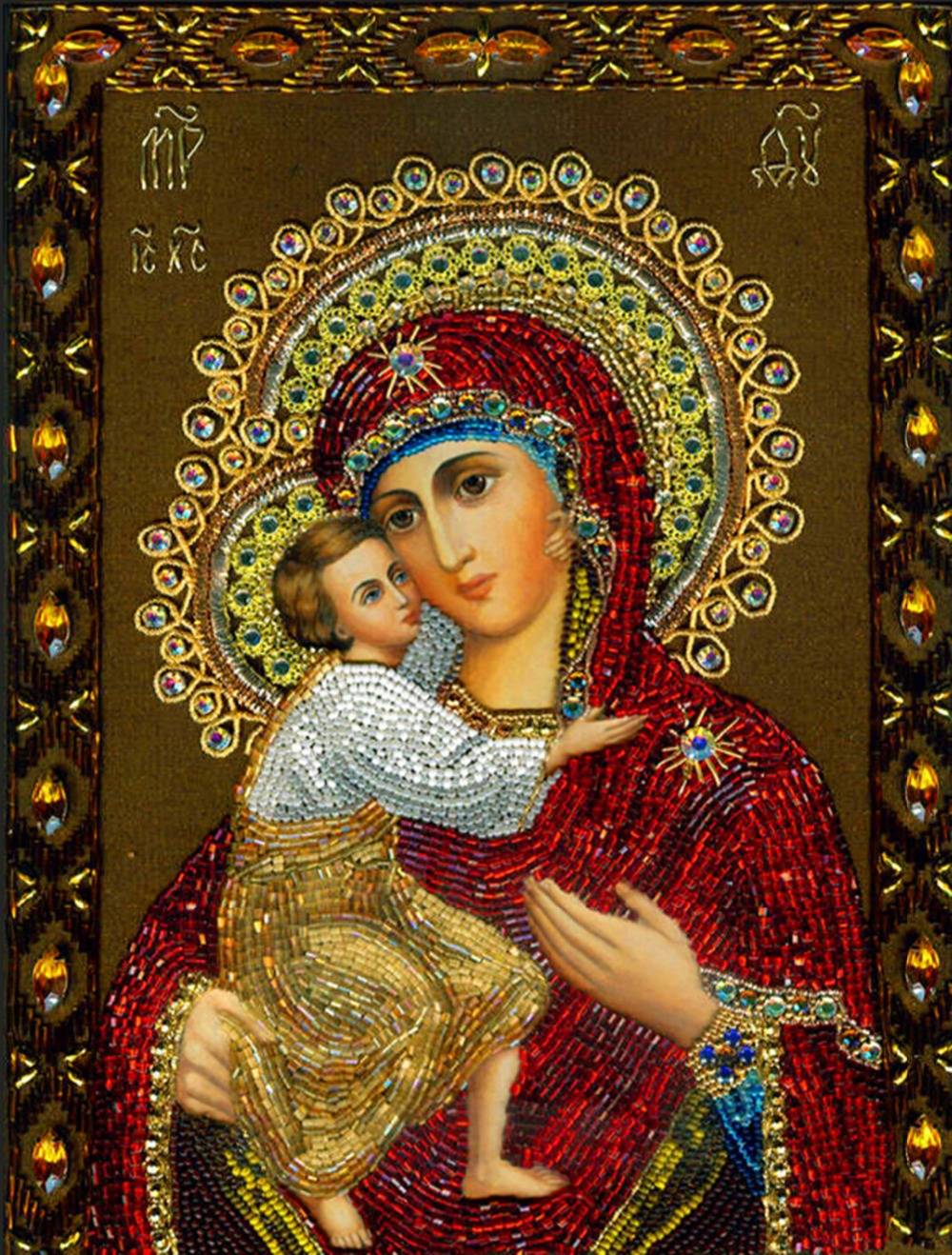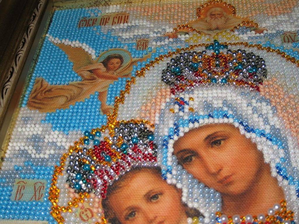 Можно воспользоваться при творении иконытаким приемом, как шахматный порядок, собирая камешки по необходимым оттенкам. Прибегая к такой методике, отсутствует смещение орнамента, картинка смотрится пропорционально.