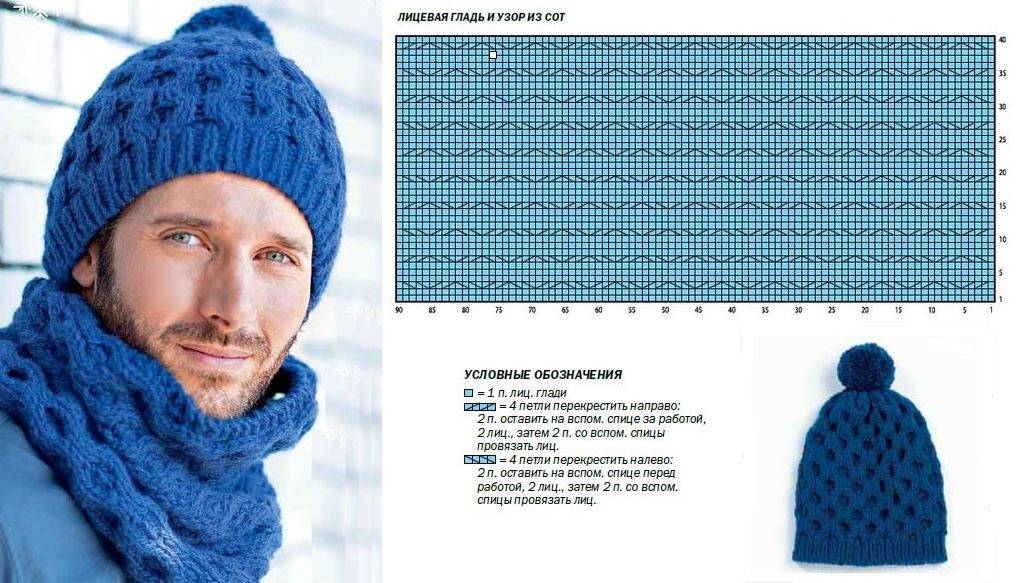 Если связать ещё и шарф, получится незаменимый для зимних прогулок комплект. Лучше задействовать для этой цели разноцветные нитки. Изготовленные из смешанной по составу пряжи предметы гардероба всегда отличаются практичностью и остаются теплыми в любую погоду. Цветовое решение для них можно подбирать самостоятельно. Процесс вязания спицами мужских шапок с описанием, в котором указаны все важные детали, облегчает работу. Своими руками можно изготавливать и стильные кепки.