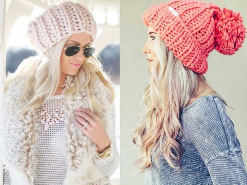 Очень популярны в этом году бини крупной вязки. Связать шапочку из толстой пряжи можно очень быстро, опытные рукодельницы справляются за несколько часов.