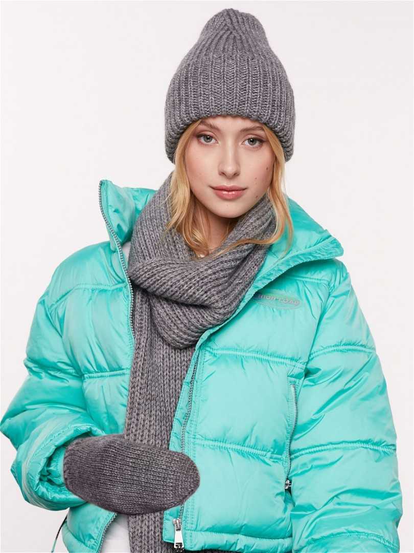 Объемная и красивая шапка прекрасно подойдет к любому стилю одежды, а если снабдить ее шарфом, то у Вас появится отличный комплект. Объемные нитки не нуждаются в дополнительном узоре, подойдет лицевая гладь, платочная вязка, простая резинка.
