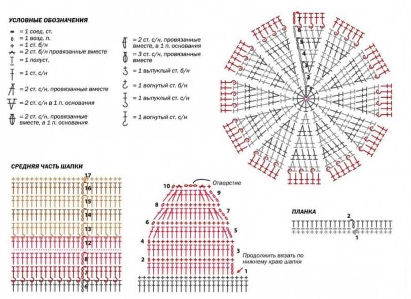 Вп- воздушная петля Сбн- столбик без накида Сс– соединительная петля Псн -полустолбик с накидом ссн-столбик с одним накидом пр-прибавка уб-убавка п/п-полупетля