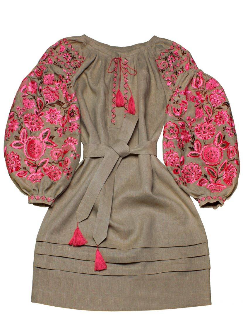 Дизайерское платье вышиванка с красивыми пышными рукавами и вышивкой гладью
