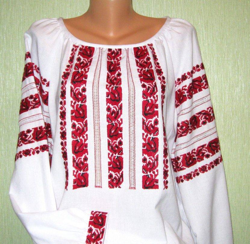 Обычно вышивкой в женской блузе декорируется верхняя часть рукава (предплечье) и грудная часть.