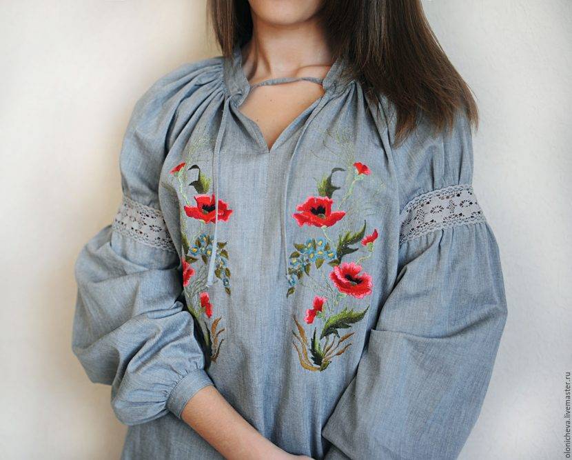 Украсить элементами вышивки можно основные и мелкие детали одежды: воротники, карманы, манжеты или рукава блузы. Эффектно смотрится рубашка с вышитыми полочками. Всегда в моде оживленные вышитыми узорами платья и юбки.