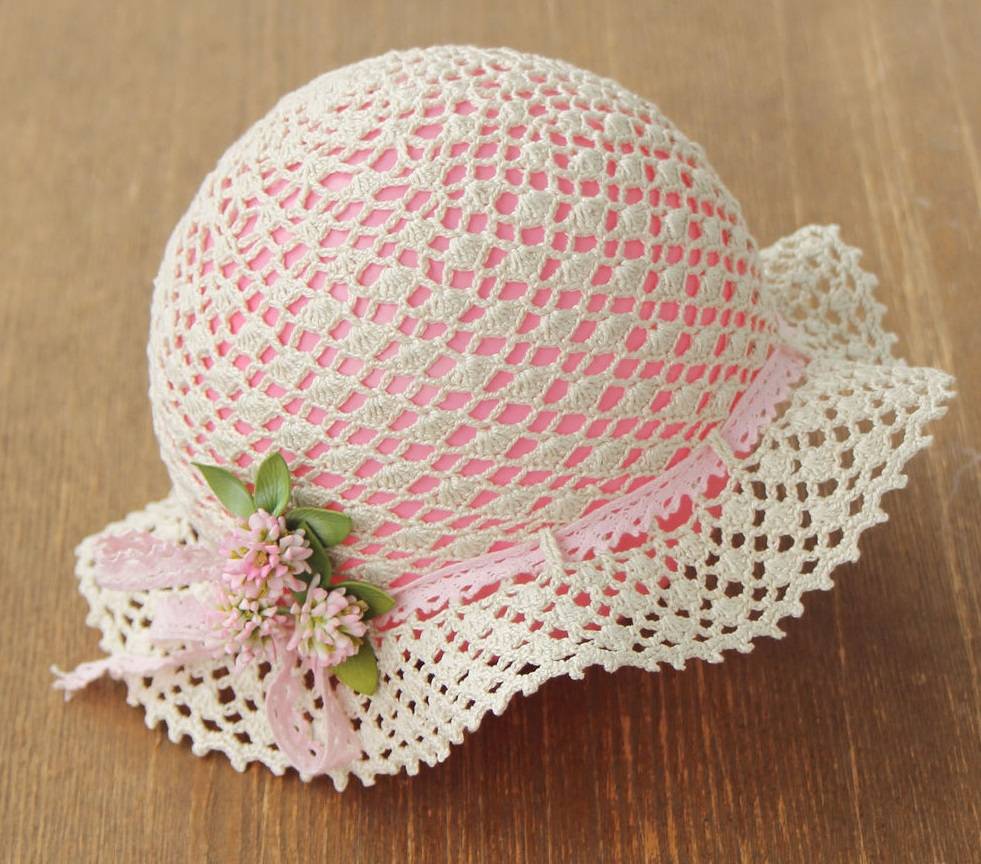 Вязаные изделия украшают кружевом, атласными лентами, продевая их между полями и основанием, завязывая бантиком. Можно использовать и другой декор, например, бусины, бисер. Их нанизывают на нить непосредственно при вывязывании детской шапки крючком или же крепят к уже готовой.